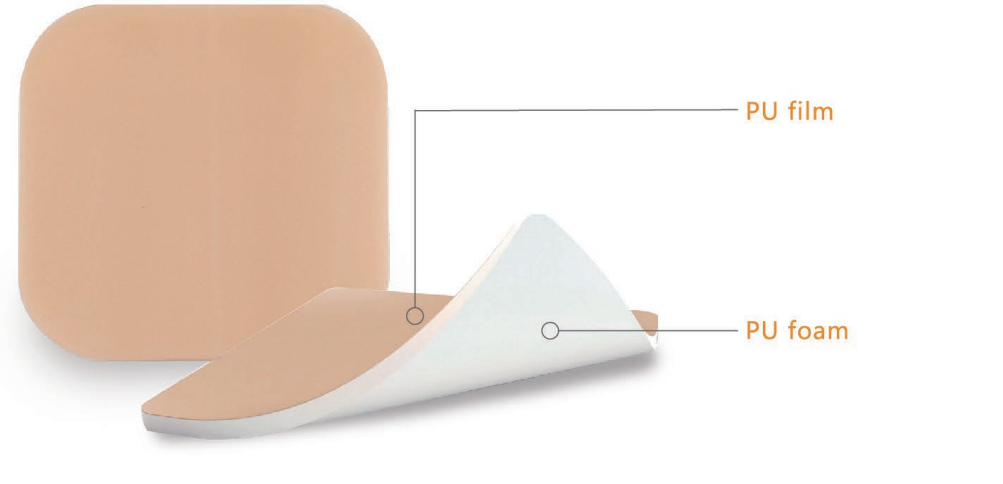 Pěnový obvaz s PU fólií je vyroben z ochranné PU fólie a absorpční PU pěny. Používá se k absorpci exsudátu z povrchu rány, udržování vlhké části rány, poskytování vlhkého prostředí pro hojení a urychlení hojení ran.
