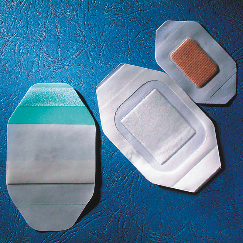 *Pórovitá neabsorbující tkanina minimalizuje pronikání tekutin do vzduchu, ale zároveň propouští vlhkost.“ PU fólie má unikátní molekulární strukturu, která je mnohem propustnější pro vodní páru než běžné fólie. Snižuje riziko infekce a výměny převazů
