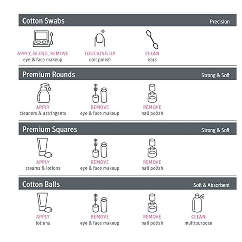 Ideální pro odstranění make-upu a laku na nehty, nanášení čisticích prostředků, adstringentů a pleťových vod.