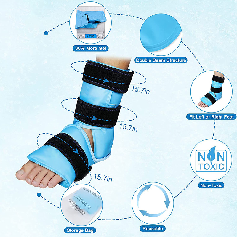 Kotníkové opakovaně použitelné ledové sáčky s odolným designem s dvojitým těsněním zabraňují úniku gelu a rozbití.