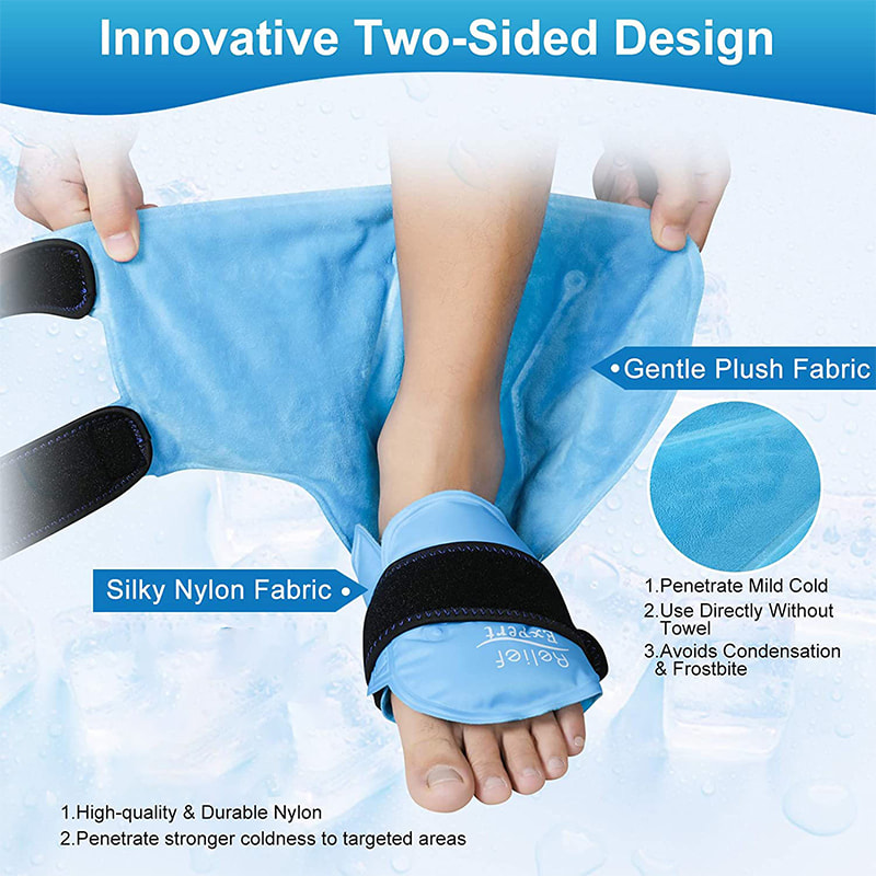 Jedna strana ledového obkladu na nohy je super měkká minky tkanina, která dokáže izolovat kondenzaci a zabraňuje omrzlinám, proniká mírným chladem a používá se přímo na poraněná místa.