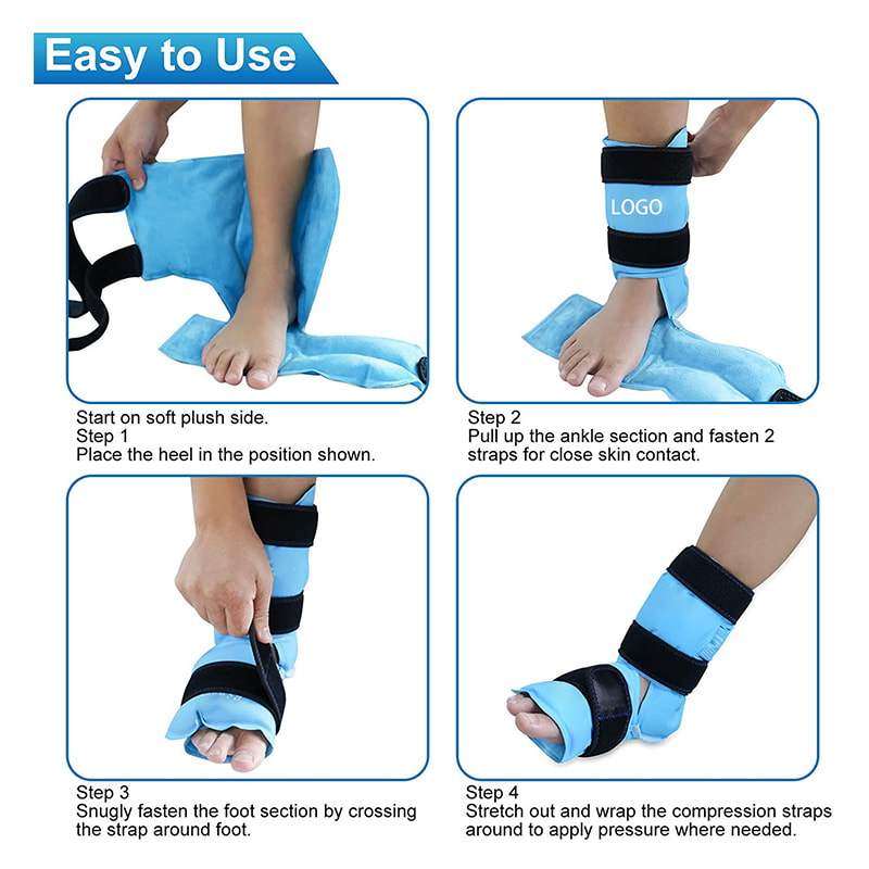Ledový obklad na kotníky je dodáván s elastickými neoprenovými pásky, které lze snadno upravit tak, aby seděly na kotníky, a poskytují účinnou studenou kompresní terapii, která má uklidňující účinek na bolesti kotníků, nohou a pat.