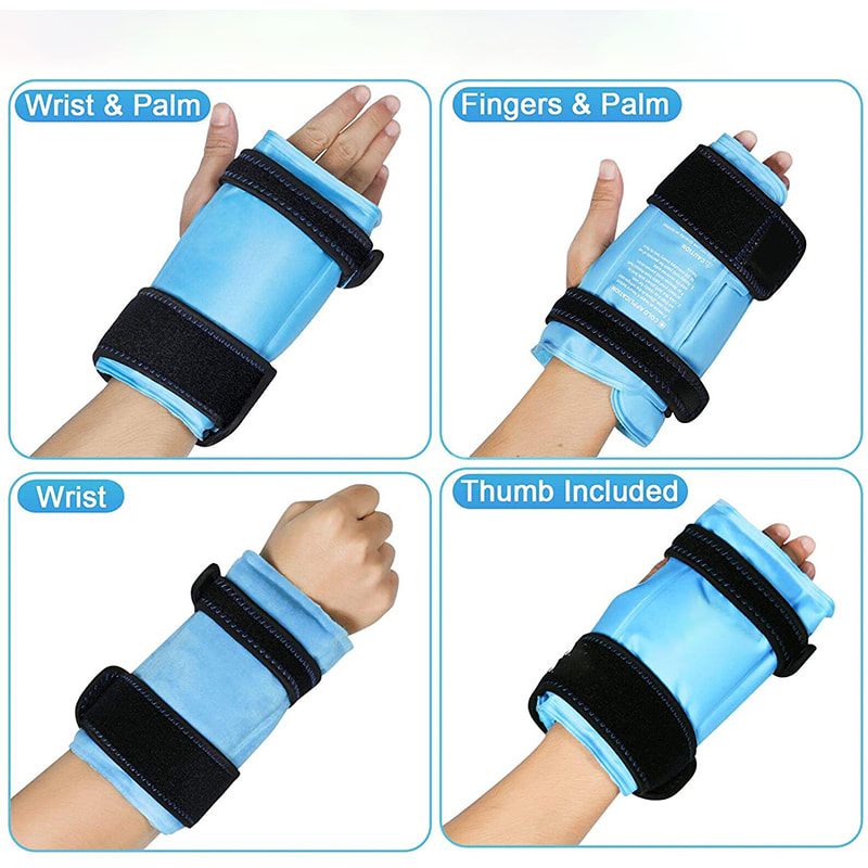 Náš flexibilní ledový vak na bolest zápěstí s dlouhým pružným neoprenovým páskem má oboustranný design, hodí se pro levé nebo pravé zápěstí a je univerzální pro lidi.