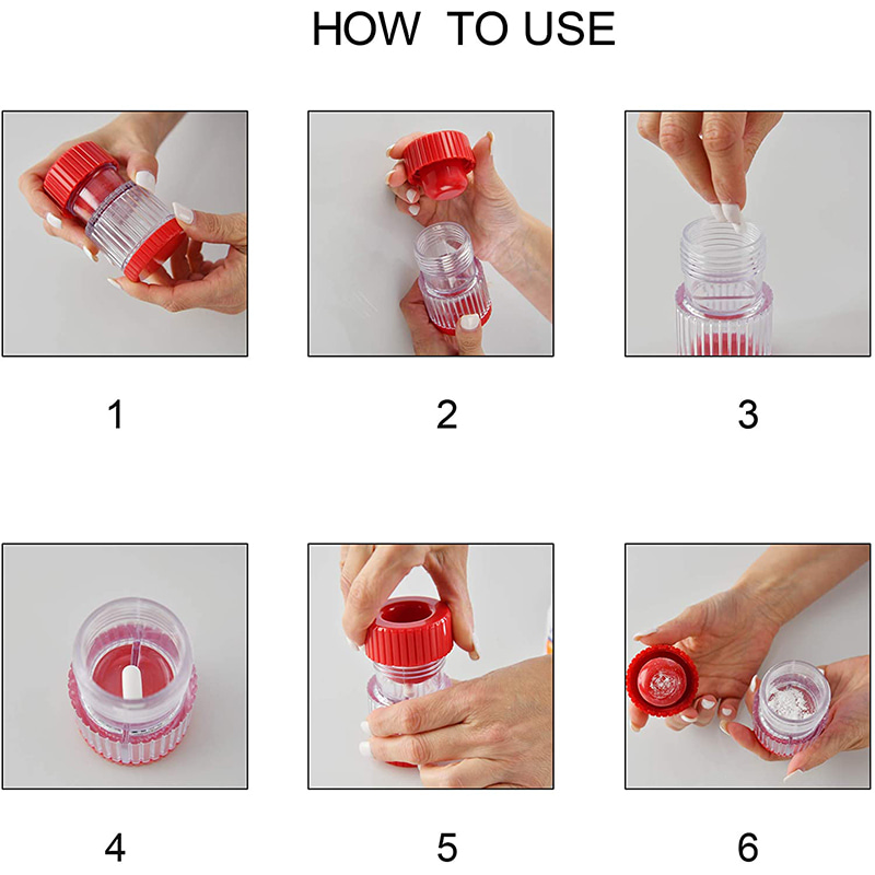 Několika jednoduchými otočeními se pilulka rozdrtí na jemný prášek.