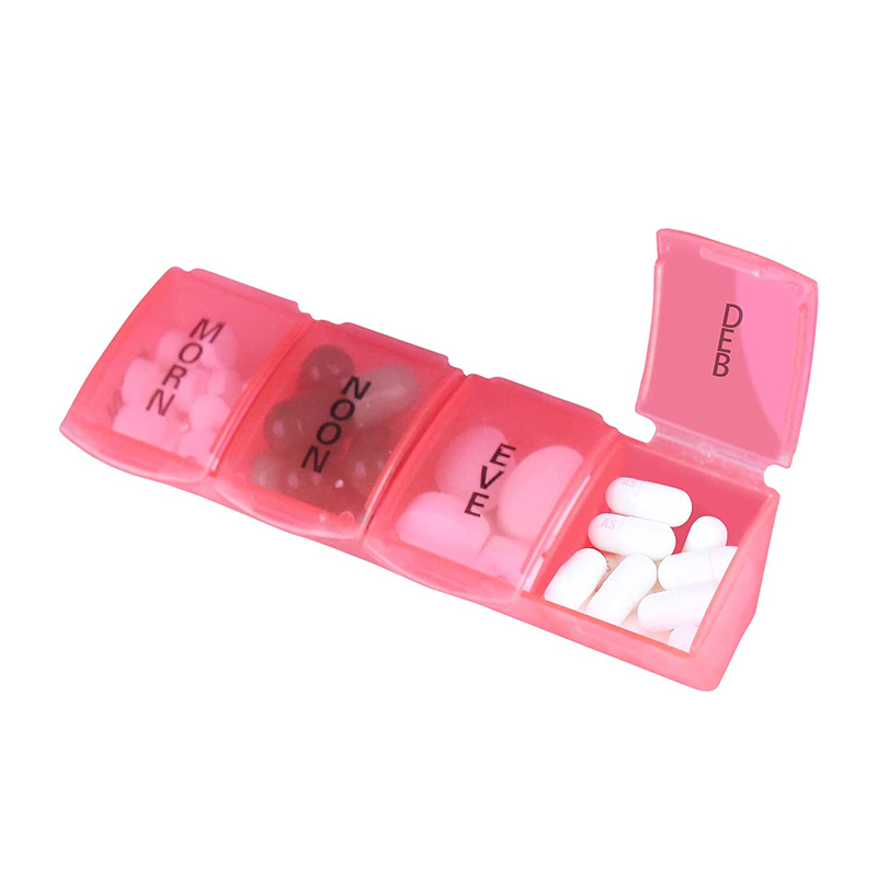 Každý zásobník je rozdělen na 4 přihrádky. Organizér doplňků se samostatnými víčky, připomenutí pilulky lze nosit s sebou