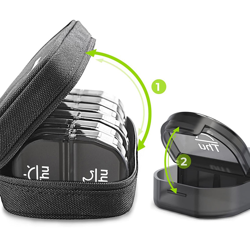 Tento držák na pilulky se vejde do vaší kabelky, kufru, batohu, kapsy, sportovní tašky, což znamená, že si ho můžete vzít kamkoli.