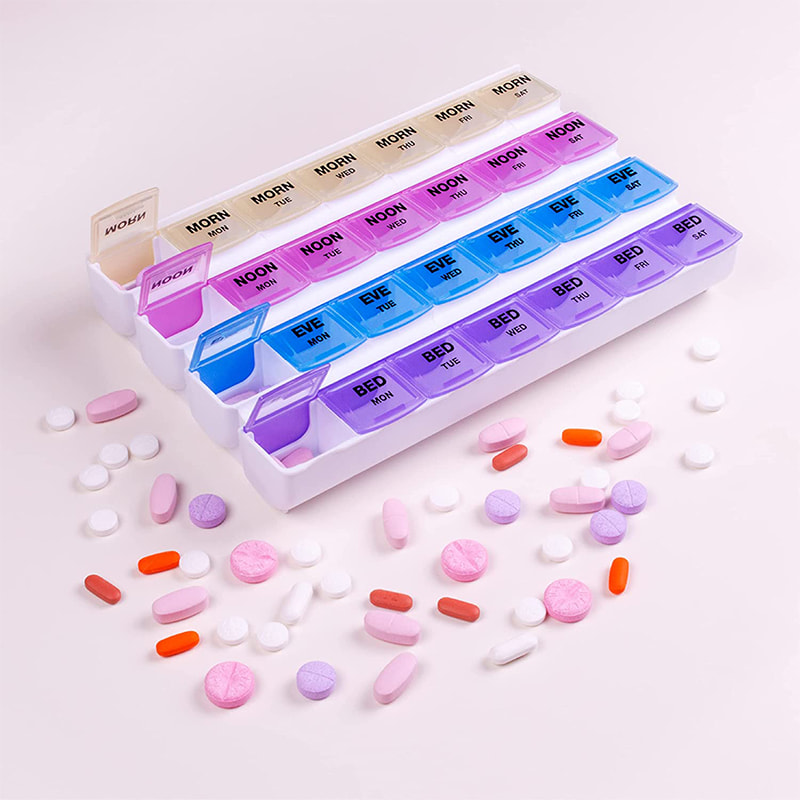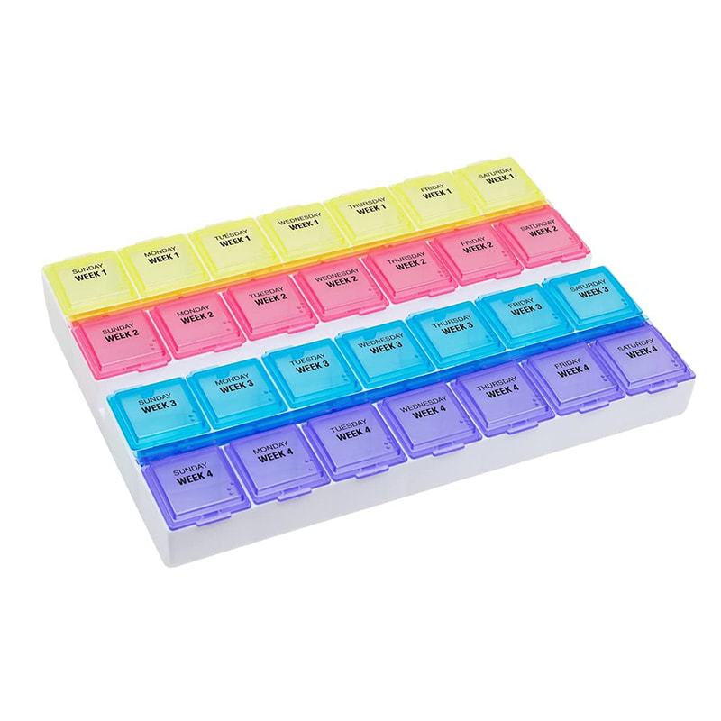 S tímto snadno otevíratelným organizérem na pilulky 4krát denně po všech 7 dní v týdnu snadno zjistíte, zda jste si vzali léky.