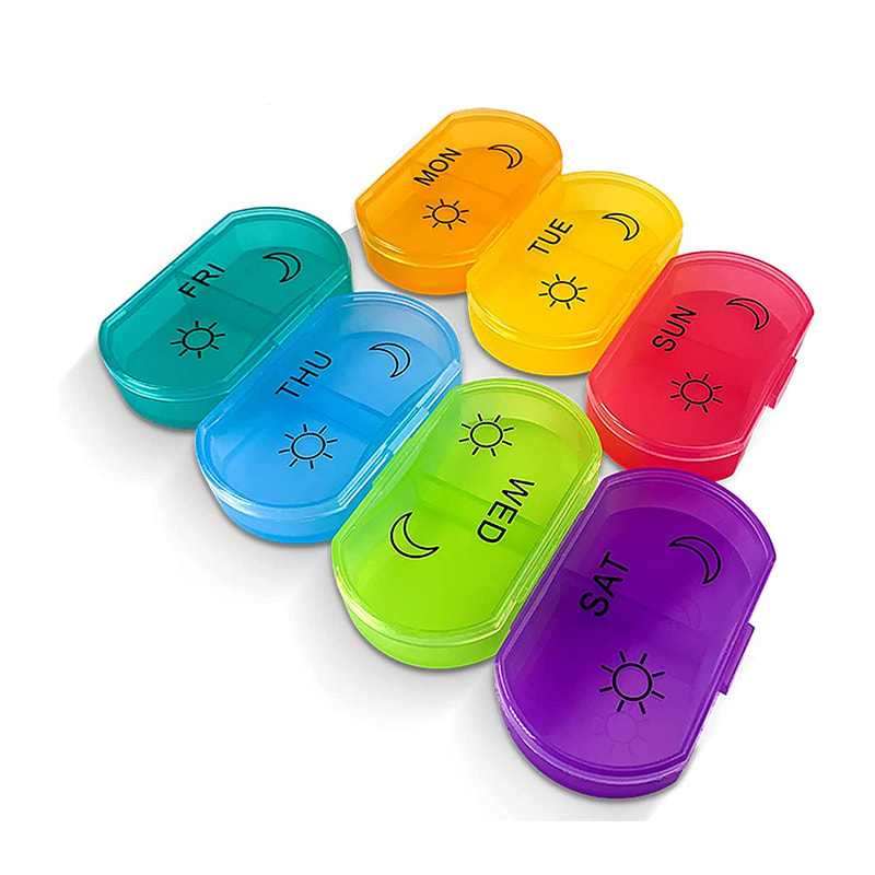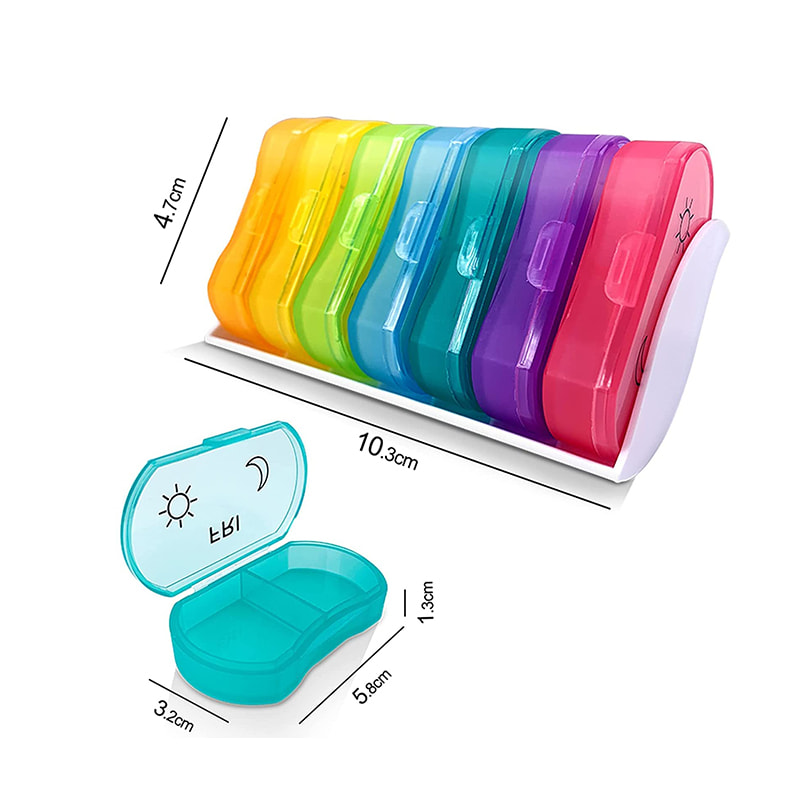 Tato denní nádoba na pilulky má velké, snadno čitelné štítky na každé přihrádce, takže svůj lék vždy najdete bez námahy.