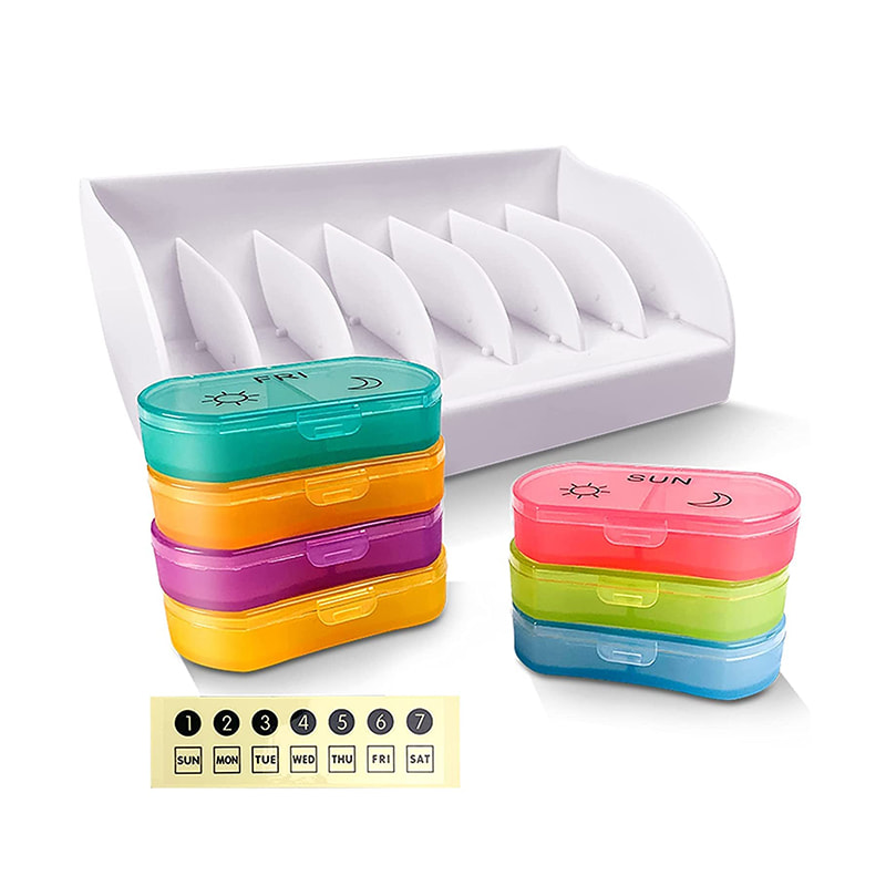 Tento malý stohovatelný denní organizér na pilulky vyžaduje velmi málo místa na pultu.