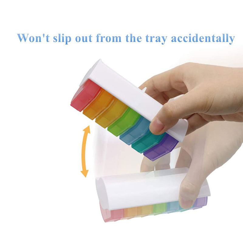 Díky bezpečným zaklapávacím víčkům na každé přihrádce si můžete být jisti, že i po upuštění vaše pilulky zůstanou na místě.