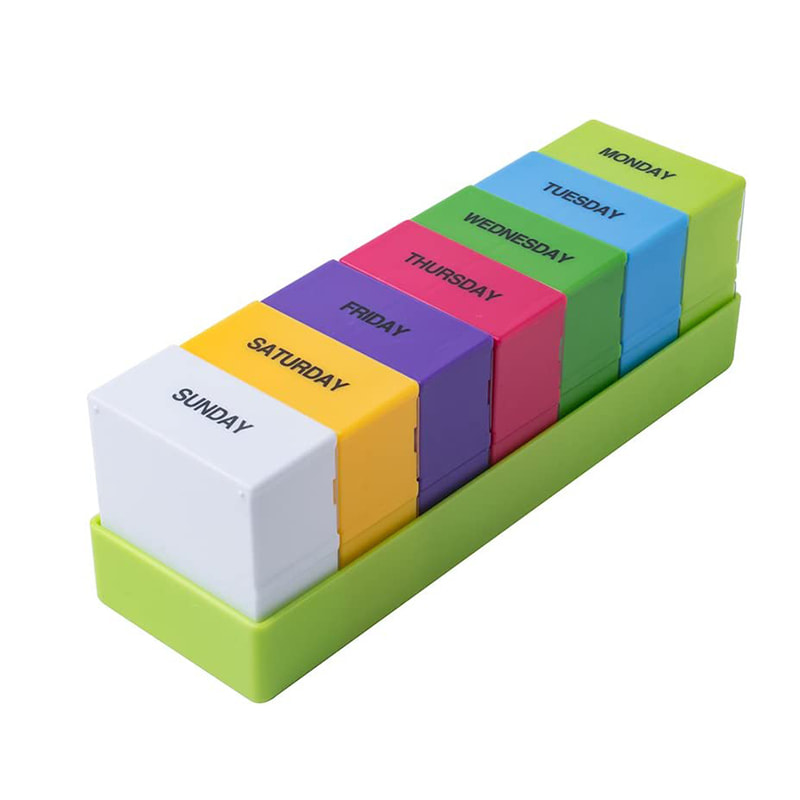 Má různé barvy, jasně označené dnem v týdnu a každá přihrádka je přes palec hluboká, takže je snadné oddělit všechny vaše pilulky ráno, večer a noc.