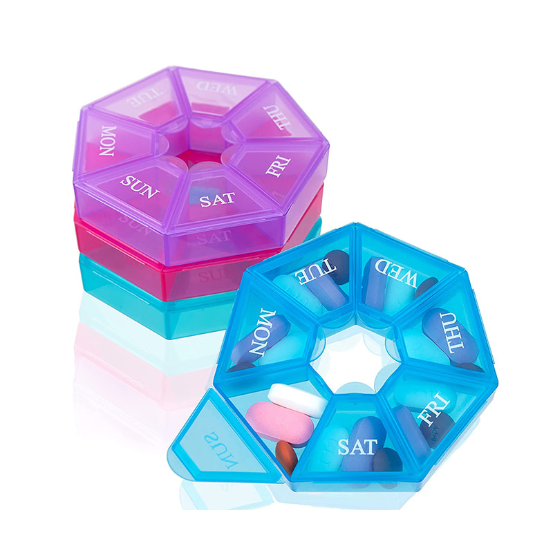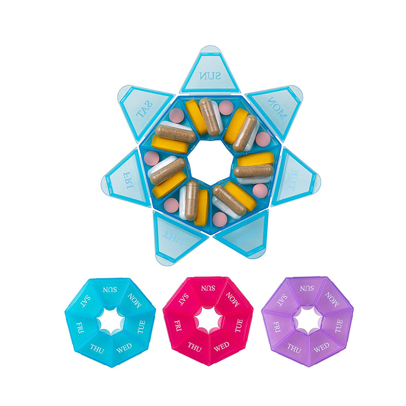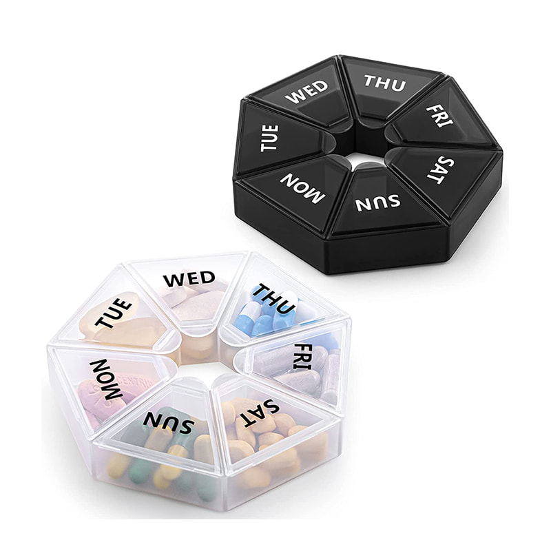 Průměr 4 palce je větší než u jiných 7stranných krabiček na pilulky, dostatečně velký na uložení více denních pilulek.
