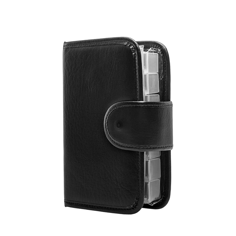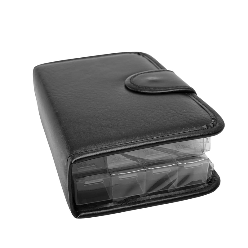 Vnější strana držáku dávkovače pilulek je bavlněná polyesterová tkanina nebo luxusní umělá kůže.