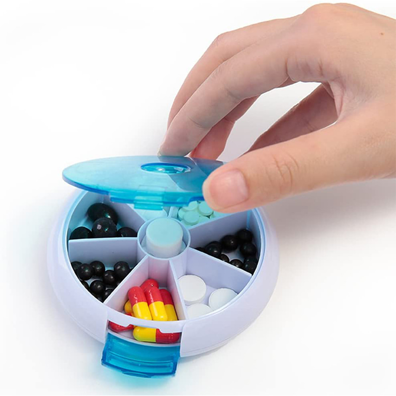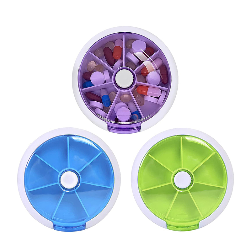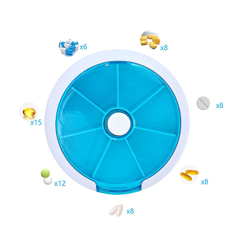Plánovač pilulek je kulatý, praktická velikost je velmi vhodná do kabelky, kabelky, dokonce i do kapsy.