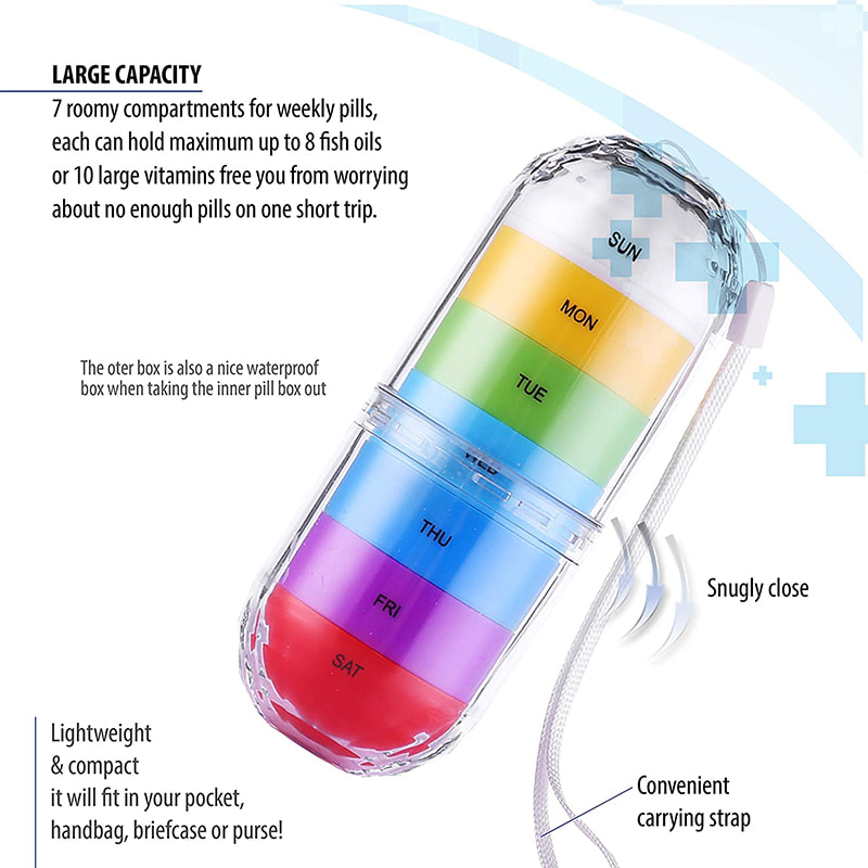 Malý lehký a dvouvrstvý roztomilý vitaminový organizér, který můžete mít všude po ruce, a nemusíte se bát, když se 7denní organizér na pilulky otevře a vysype během letu.