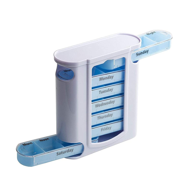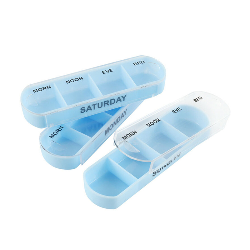 Vnější pouzdro je navrženo jako průhledné a každý zásobník má jedinečnou jasnou barvu, aby uživatel snadno rozlišil dny v týdnu.
