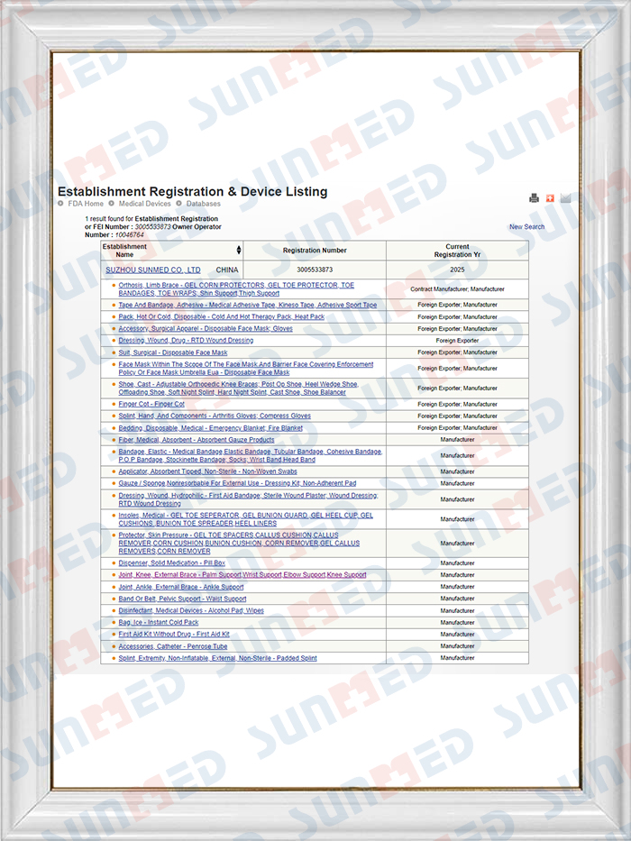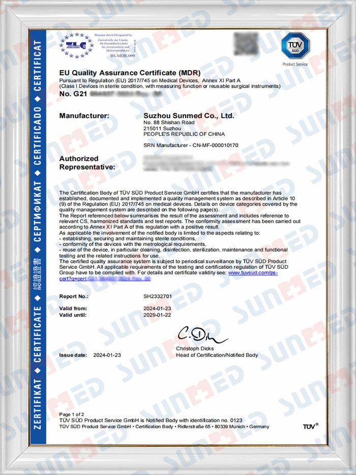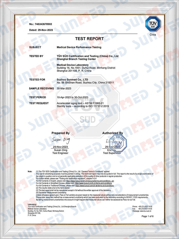 Sunmed se může pochlubit profesionálním týmem kontroly kvality, který tvoří stovky zaměstnanců, kteří důsledně dodržují kontrolní postupy, aby zajistili, že naše normy splňují normy ISO13485:2016. Většina našich výrobků má certifikaci CE a naše továrny v Suzhou splňují požadavky FDA.