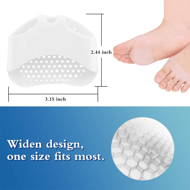 Voštinový design metatarzální vycpávky činí výrobek s dobrou prodyšností a 3 samostatné otvory umožňují, aby tato podložka lépe obepínala vaše nohy, neklouzavý design.