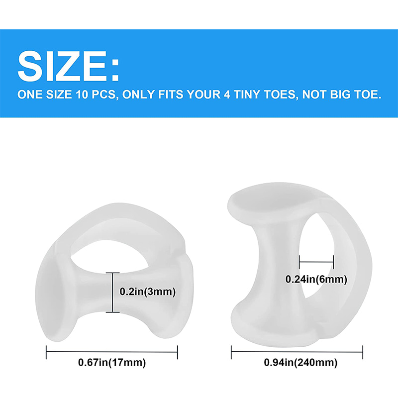 Oddělovače malých prstů pomáhají uvolnit vaše prsty na nohou, snižují tření a zmírňují tlak, zabraňují překrývajícím se prstům, puchýřům a sekundárním poraněním a kožním infekcím.
